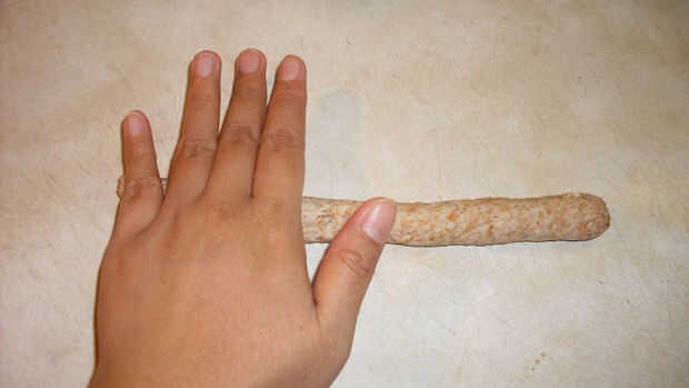 Dividir la masa en dos partes y la forma en forma de cuerdas largas. Cortar cuerdas más pequeñas y hacer panecillos de cada cuerda. lugar en papel de aluminio forrado de hornear y dejamos reposar durante media hora