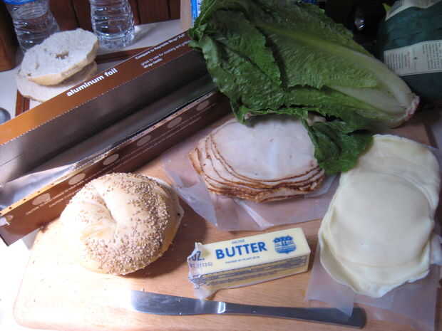sandwich bagel impresionante con tomate, queso, pavo y (por supuesto) un bagel!Paso 1: Obtener los suministros Para hacer este sándwich totalmente sabrosa , necesita...1/2 bagelcuchilloqueso americano de 1 piezamantequillaTurquía 1 piezay un tomatePa