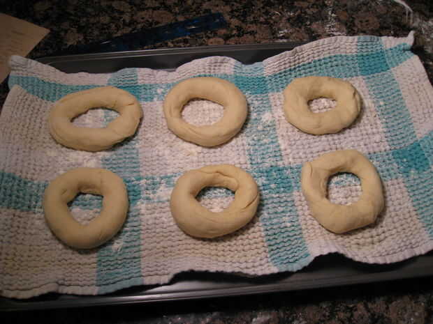 También puede formar cada pedazo de masa en una bola y hágale un agujero en el centro con el dedo. Utilice sus dedos para estirar suavemente el agujero al tamaño adecuado.