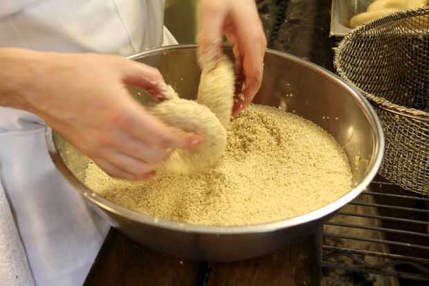 Coloque los panecillos de sésamo en el tablón de madera para que queden cerca, pero no tocar.
