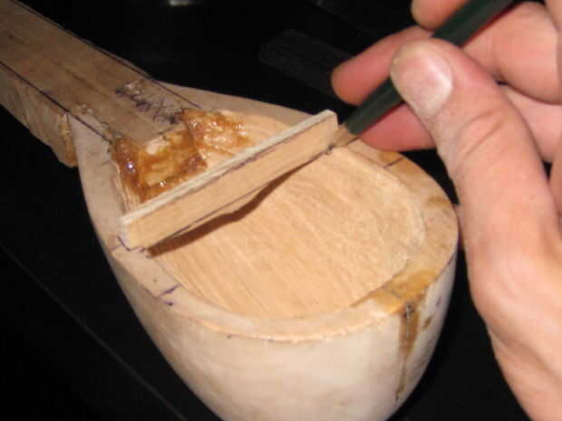 Baglama construcción - fabricación de un instrumento de la música tradicional griega cadena (7 / 13 paso)
