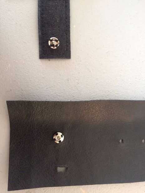 Doble el pedazo de correa, maneras de longitud la mitad y coser el borde abierto. Asegúrelo a la espalda con un alfiler o un trozo de cinta. Coser la correa y la batería a la pieza posterior de la aleta.