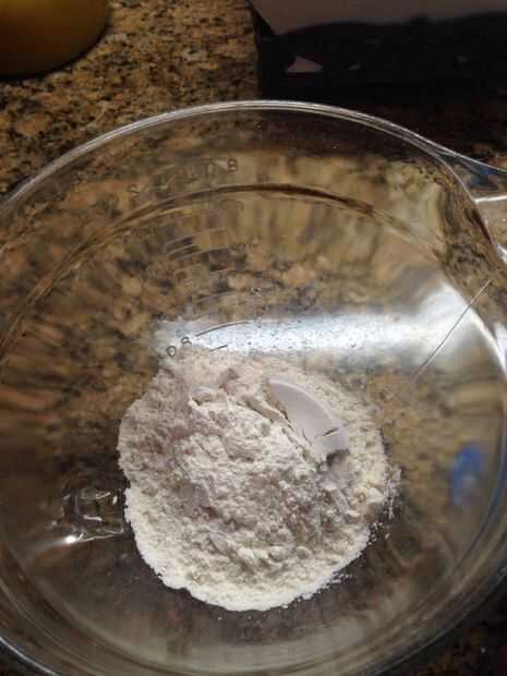 Añada aproximadamente 1 taza de harina. A continuación, vierta en el agua. La cantidad de agua depende de qué textura le quiero la masa.