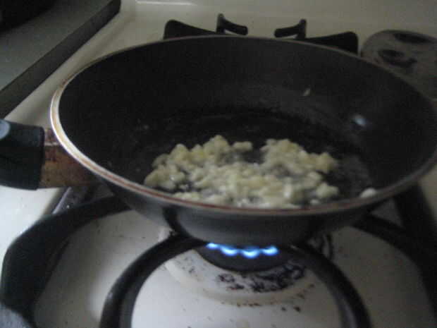 Saltear el ajo con la mantequilla a fuego lento hasta que estén tiernos.