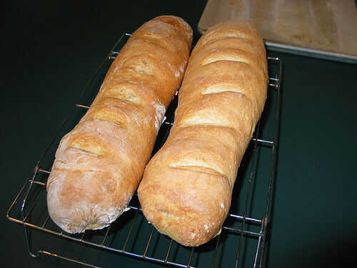 Para una corteza crujiente, más gruesa, rocía el horno con unos arroja a chorros deagua antes de agregar el pan, o colocar un tazón de agua caliente horno en el estante de abajo del pan.