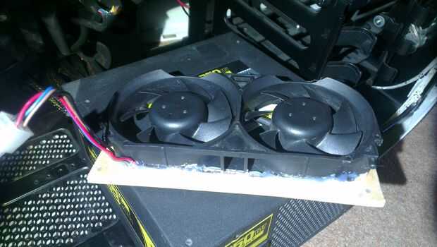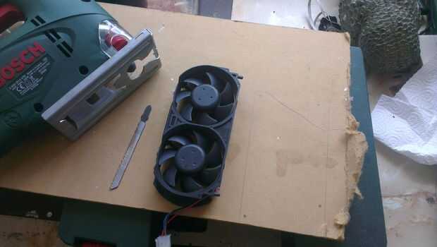 En primer lugar, recortar el plástico sobrante de la shrounds del ventilador, que hacen el módulo de ventilador más ancho que una real fuente de alimentación (puede causar problemas de compatibilidad con el panel posterior).