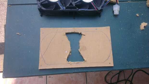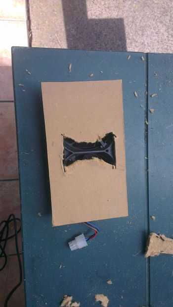 Puede sentarse los fans contra el marco, o cortar la forma interior que ligeramente más ancha que los aficionados para ellos sentarse al ras contra la parte exterior del marco. Si el marco se divide en dos, o batallas en las esquinas (particularmente con MDF suave), no te preocupes, es bastante fácil de solucionar posteriormente.