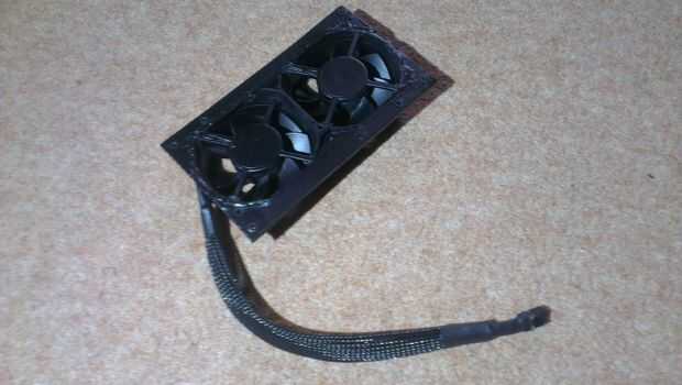 Los ventiladores juntos dibujará sobre 800mA, que puede ser el límite de algunos encabezados de ventilador de la Motherboard, Tarjeta madre. En este caso, es más fácil a los fans de dos cabezales independientes, la energía o conéctelos juntos y alimentación mediante un cable de 12v molex. Les até a un cabezal de ventilador, puramente ya que tengo un controlador de ventilador capaz de proporcionar suficiente energía.