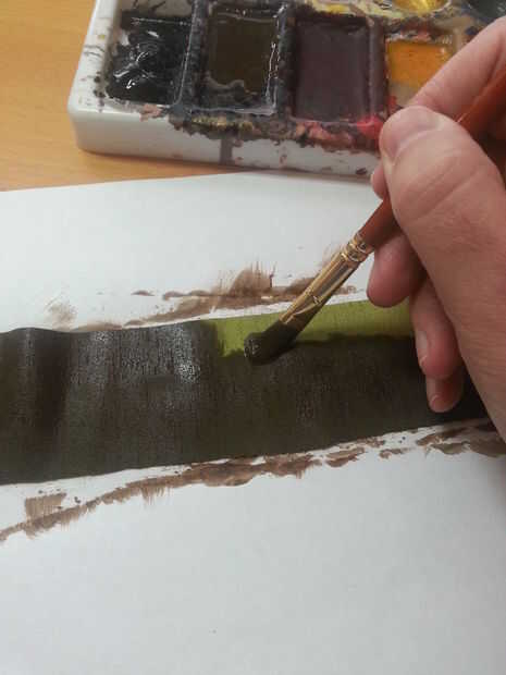 Tengo a alguna tela delgada verde que tenía un poco de textura y había pintado en un tono mucho más oscuro. Esta sería la base para todo lo demás que viene en la parte superior.