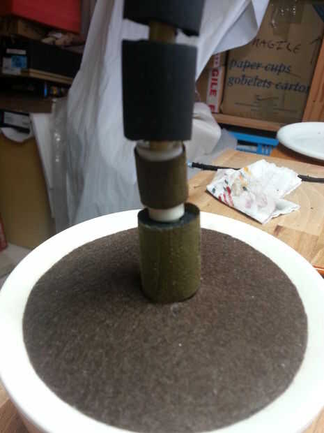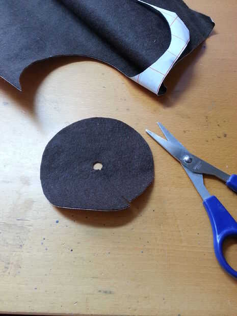 He encontrado algunos papel cubierto de fieltro marrón que yo tenía guardadas, sin ninguna razón particular para años. Ahora finalmente tenía una razón para usarlo!! I recortar a la forma y pega los bordes para formar un cono. Esto fue colocado en la base.