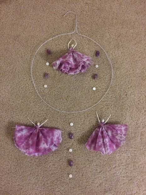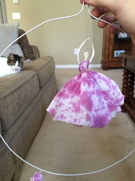 Hilo de pescar a través de la cabeza de la bailarina y colgar en el aro.