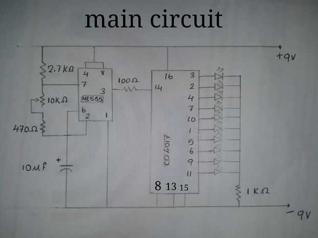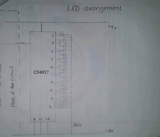 CD4017 es un 16 perno CMOS década / divisor. Toma la señal del reloj de la entrada de reloj y se convierte en el 10 la salida en secuencia, cada vez cuando recibe impulsos de entrada de reloj. Un popular IC, CD4017 es extremadamente útil en diversos proyectos como luz Chaser, matriz de morir. También es útil en muchas aplicaciones como contador/decodificador binario de división de frecuencia, divida por N cuenta, sistema de alarma etc..