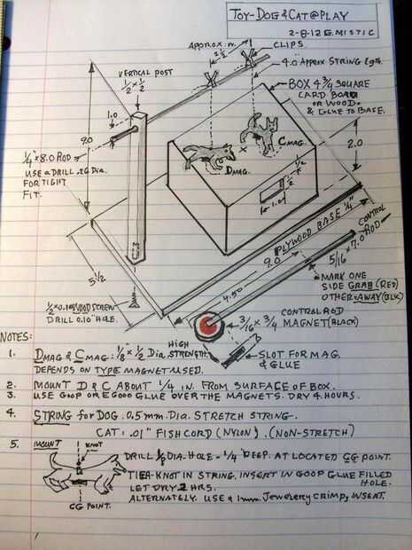 Cadena- Para los efectos especiales se utilizan dos tipos. Para el perro use estirar cuerda o cadena de empresas arte joyería o Walmart. Esta cadena se extiende hasta el 300% y vuelve a su longitud normal cuando se libera. Su muy elástica y hará que el perro al saltar y girar vigorosamente alrededor y hacia arriba y hacia abajo. El gato utiliza no tramo de nylon o cuerda de pesca antigua buena. Girará fácilmente si el tamaño es muy delgada fuerza aproximadamente 5 libras o menos. El cordón elástico debe ser sobre .5millimeters ø 8 mm. Costo es de 15 pies por $2.00.