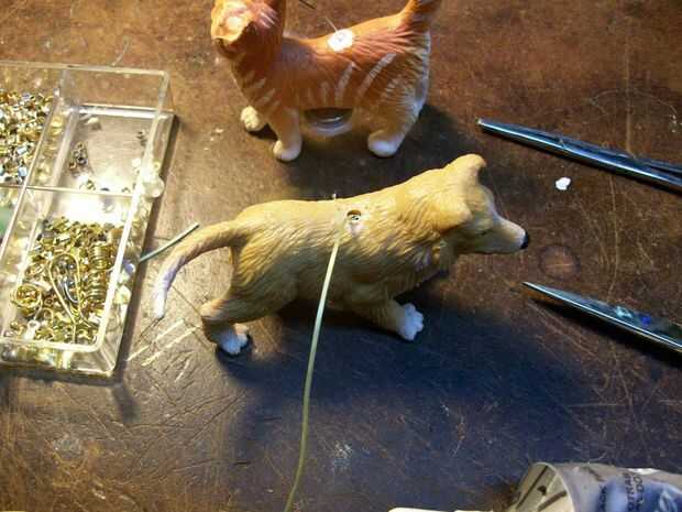 Asamblea de pet- perfore un orificio de 1/8 en el centro de la parte superior de los animales domésticos alrededor de 1/2 pulgadas de profundo. cerca de centro de gravedad.