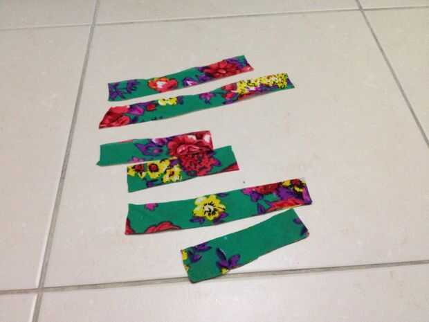 corte algunos Cruz piezas para terminando el cuello y sisas.