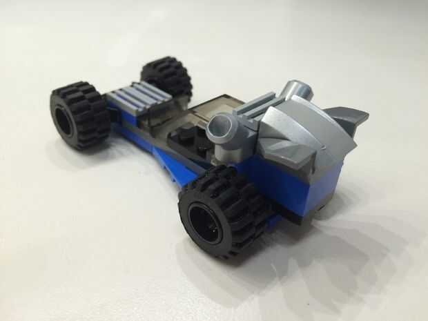 el coche de carreras de Lego Wireless original fue construido con el hackeado motor y caja de engranajes con ejes que llevó a cabo de R/C coche de juguete y modificado placas de LEGO para ser utilizado como un soporte de servo.Posteriormente diseñé n