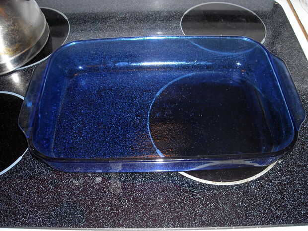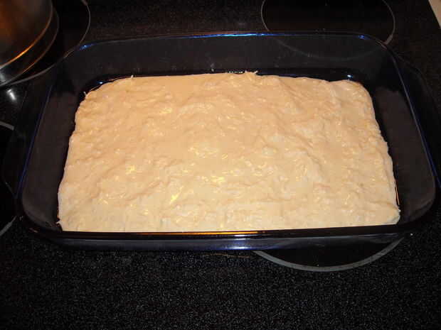 El 9 x 13" para hornear con el aerosol de la capa, luego separó la mezcla para cubrir el fondo de la cacerola.