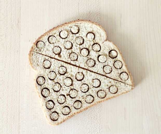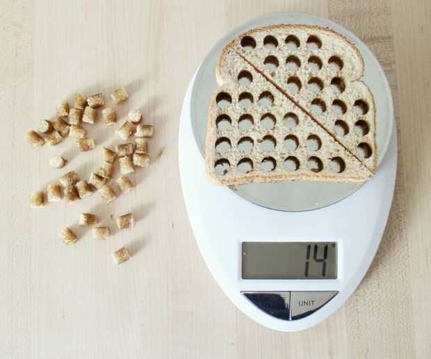 Una vez con éxito ha cortar los círculos de su pan y quitar los pedacitos de agujerito, puede pesar una de esas rodajas otra vez y ver la diferencia! Que terminé quitando 5 gramos de carbohidratos por rebanada!