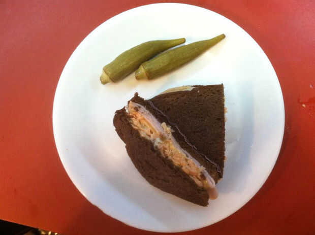 Puré abajo mientras se está asando como si fuera un emparedado de Reuben.