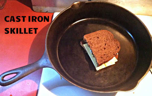 Separarse en una pequeña cantidad de mantequilla ayuda a tostar el pan, mejora la textura, se calienta el contenido y se derrita el queso. Asar en una parrilla de hierro fundido o sartén.