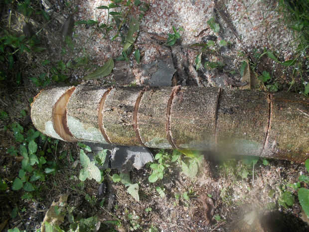 La próxima cosa que necesita hacer es encontrar un registro fresco que crezca. Fresca posible ya no luego 1 mes de edad. Luego corte el registro con mi motosierra en galletas. Si no tienes una motosierra se puede utilizar una sierra de mano.