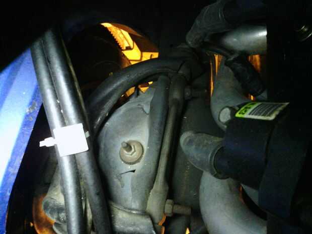 Para obtener bajo el capó, usted verá un montante de alrededor de la zona superior de un brazo que parece esto, quitar la tuerca con un 9/16" profundidad con extensión a Desatornillar la parte superior de la descarga.