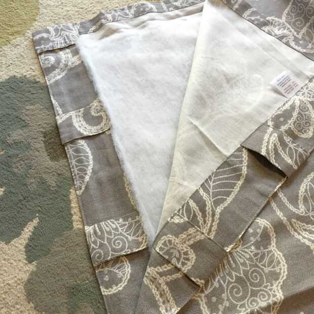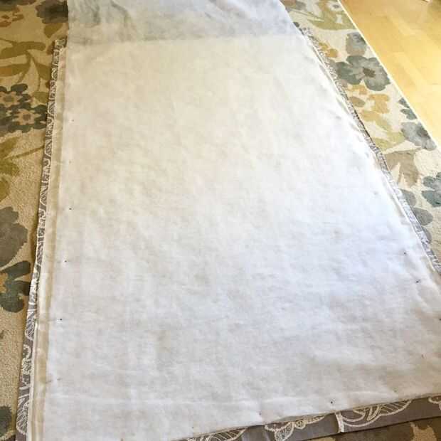 * Las cortinas había eran más grandes y luego la anchura del bateo, si Asegúrese que son del mismo tamaño tendría cosas mucho más fácil! Si tiene el mismo tamaño entonces simplemente intermedia bateo entre paneles de cortina delantera y trasera. Uno de ellos tendrá el velcro, uno que no. Asegúrese de que el panel de cortina mal lados toquen el bateo.