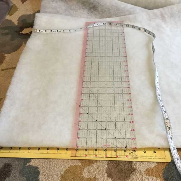 Ahora usted a recortar la tela para el Valencia. Por su longitud que miden los bordes laterales y el borde delantero de la madera y agregarlos todos juntos (4 "+ 4" + 79 "= 87"). Decidir cuánto tiempo desea que el Valencia cubra, añadir la anchura de la madera y que por 2. Quería que la cenefa que cuelgue 12" así que agregué 4" anchura de la madera y que multiplicado por 2 porque quería doblar la tela por la mitad ((12 "+ 4") x 2 = 32"). Plegado hace que la tela más gruesa y también lo hace para que no tenga a dobladillar el borde. Mis medidas eran 32" de ancho x 87" de largo.