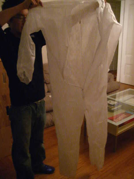 De lo primero. Tienes que colocar en sus materiales. Decidimos hacer nuestras Chistera fantasmas un traje usado de pintores. No dude en improvisar con otros materiales blanquecinos. Ser creativo!