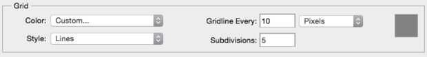 Ir a Photoshop -> Preferencias -> Guías, cuadrícula y sectores. Establece en línea de cuadrícula cada: 10 píxelesy subdivisiones a 2.