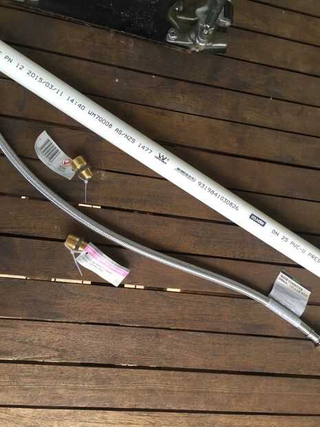 Herramientas realmente necesita un taladro para perforar 4 agujeros en los adaptadores de latón. Encontré que sólo no podía hacerlo por taladro de mano como el latón es tan suave. Usted se necesita para metal/madera brocas. Una llave ajustable viene muy bien a los adaptadores en los extremos del tubo flexible.