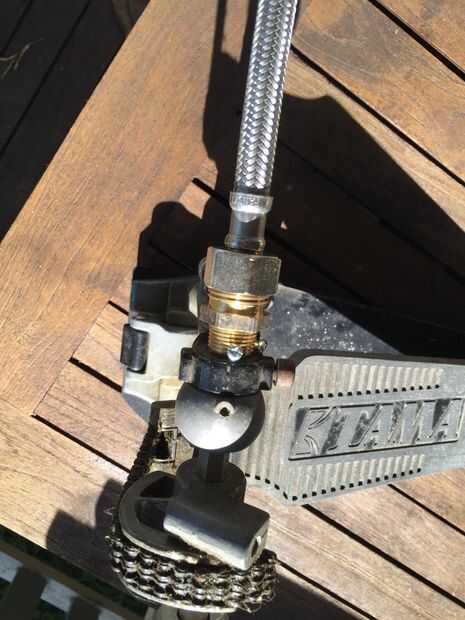 Quería poner una almohadilla pedal de patada hasta la parte superior para usar con el palillo de tambor. Así que corté a un viejo IBM teclado numerico de un teclado, conectado a un enchufe de 1/8 mono ", y ahora tengo un"colchón adicional bastan
