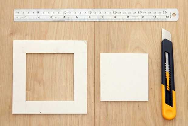 -Corte una ventana en el centro de la plaza que es un poco más grande que la ventana que hizo en la tapa. Mina fue 10.5x10.5cm