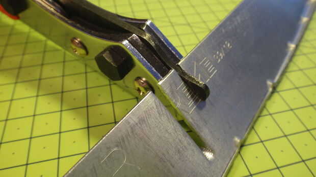 Como se puede ver que cortaban un canal de 3mm hacia fuera, así que tenga esto presente al recortar trabajo. Sin embargo, a diferencia de Cizallas o tijeras de lata, no la hebilla o el metal de la torcedura y te queda un 'piso' cortar cada vez. Concedido se requiere cierta fuerza, pero menos de lo que usted esperaría que todas las cosas consideradas.