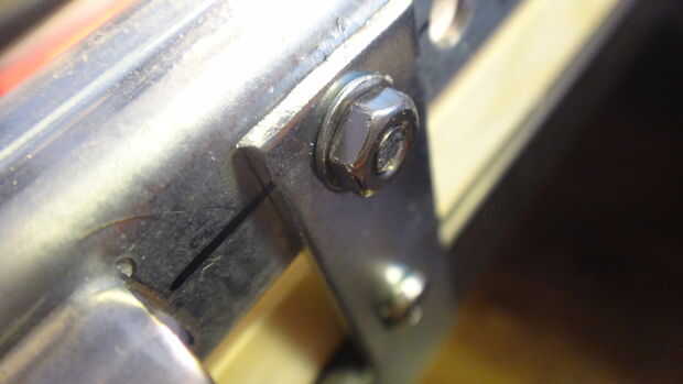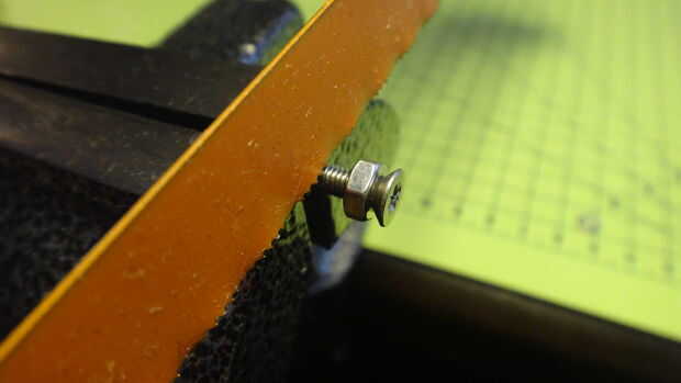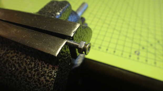 La primera foto muestra que el tornillo sobresale demasiado. Ahora usted puede conseguir uno del tamaño adecuado, pero que no siempre es posible. La siguiente imagen muestra el tornillo cortado a la medida.