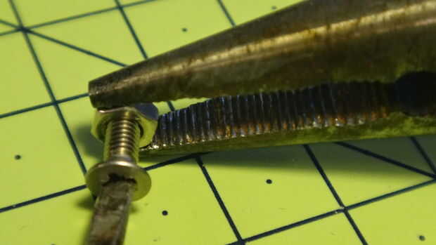 Ahora si lo ha hecho hasta el paso 4 sin la tuerca del ser, ahora habría en mal estado-para arriba el hilo de rosca del perno. La tuerca, como que se desenrosca, realmente 'volver a cortes' el hilo de como deja - facilitando la vuelva a enroscar. De yapa un tornillo hacia adelante y hacia atrás en el bask mordió a incluso hacia fuera.