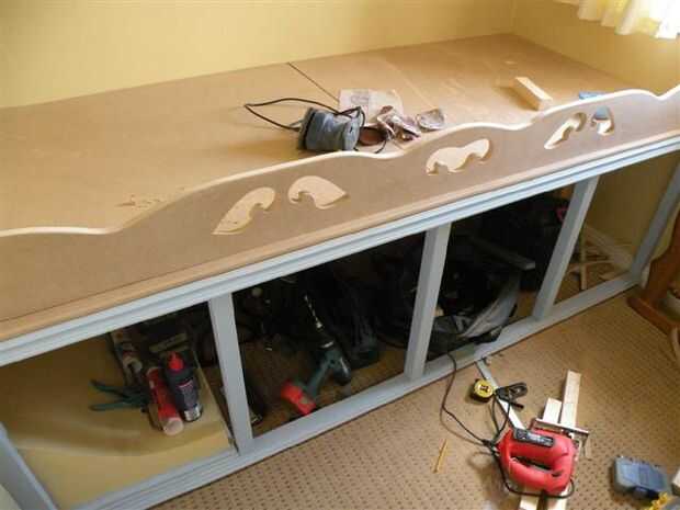 Primero cortar el MDF para ajustar el tamaño de la pared y la altura del colchón.
