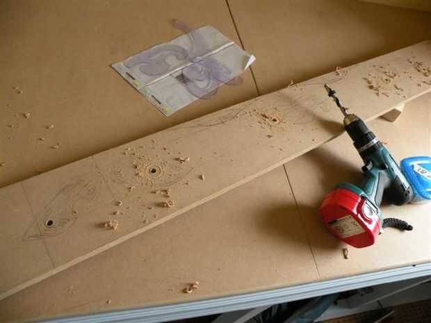 En imagen 7 se pueden ver 2 pequeñas piezas MDF para los lados interiores de la Junta para apoyar y para fijarse a la pared.
