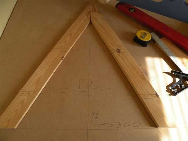 Ahora sus ángulos están listos, todo lo que tienes que hacer es traer la línea de puntos de encuentro desde el dibujo a la madera y el ángulo de corte.