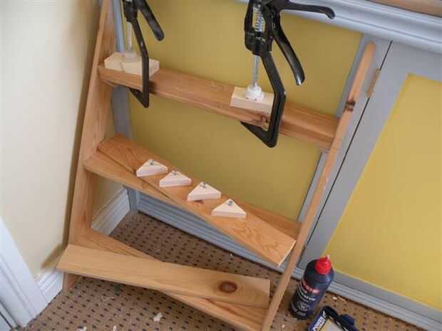 He utilizado madera de una vieja estantería y duplicó la thckness de los pasos para mayor seguridad. Un buen grosor para los pasos es de unos 30 mm. uso un router eléctrico o papel de lija para redondear todos los bordes delanteros de los pasos.