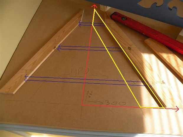 Una forma fácil de obtener sus ángulos para cortar los lados de la escala es medir la altura de la escalera y mida la distancia desde la parte inferior de la escalera a la unidad.