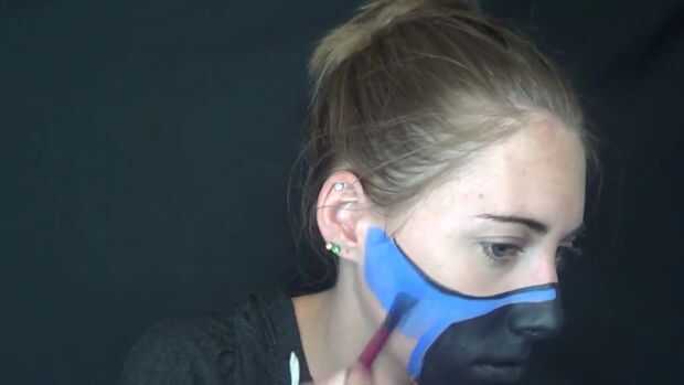 Que una pintura de cuerpo de luz azul de Snazaroo llené en la máscara.