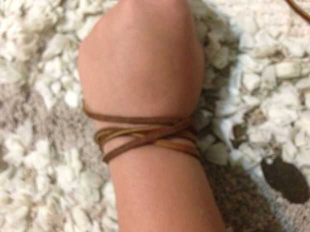 Primero tome la cantidad deseada de cordón de cuero y cortarlo. Luego envuélvalo alrededor de su muñeca y añada encantos siempre que desee. Sólo sigue envolviendo y agregar encantos hasta su satisfacción. Ate para completar la pulsera.