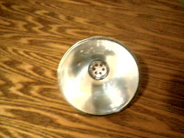 Una vez en el lugar, seis pequeños agujeros perforados alrededor en el reflector pequeño suficiente o montar Leds de 5mm.