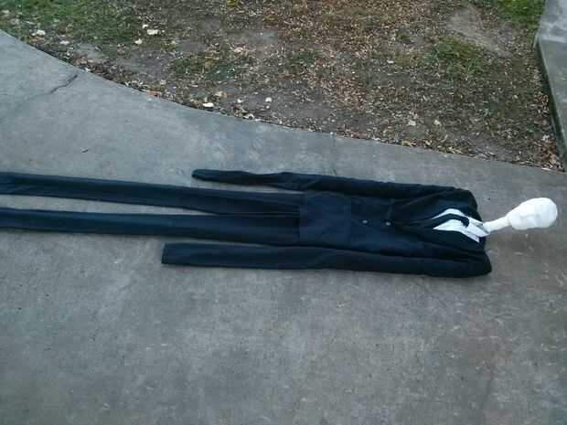 A menos que tenga un amigo de 3m de altura, tendrás que coser un traje a medida para tu hombre delgado. La imagen debe explicar sobre todo el proceso.