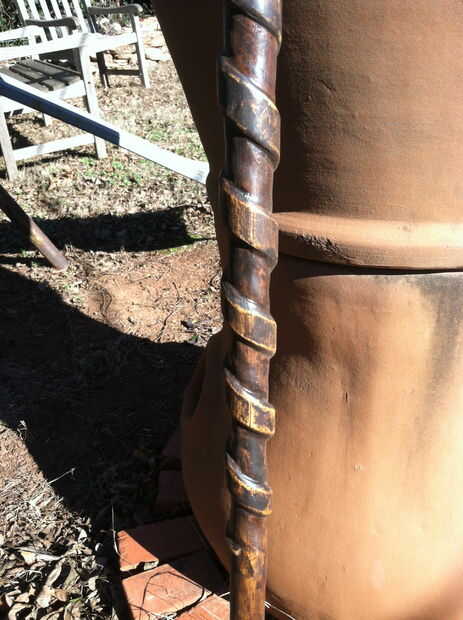 Yo había planeado en la coloración a la serpiente, dejando el eje redondo sin mancha, pero no me gustó la forma en que veía. Teñido la madera un gran nogal lijado y pulido de piezas de la madera, haciéndola parecer viejos y antiguos.