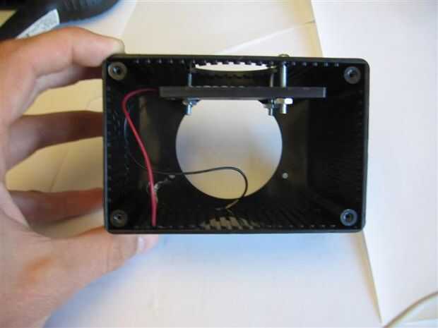 Inserte los tornillos de montaje, a través de la caja y la célula solar así que las cabezas están en el exterior de la caja. Coloque las tuercas en los pernos justo debajo de la celda, pero no los apriete.