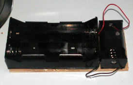 3. un portapilas de 4 D-cell con "broche de presión terminal" (también conocido como: estilo de 9 voltios) conector y un sostenedor de batería D-cell solo con los cables. Encontré el titular de 4 celdas en eBay para $6 (después s/h) y el soporte de 1 célula en Radio Shack de 99cents - o intenta esto. (Esto es lo que necesitaba para alimentar el 6.5v MG2000. Si usted tiene compra un receptor diferente, asegúrese de comprar el número correcto de titulares para suficientes baterías para alimentar el receptor.) Asegúrese de usar los titulares D cell para maximizar la vida útil.)