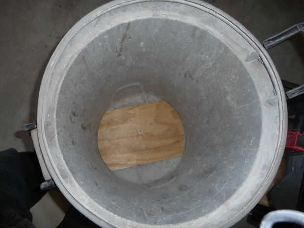 Esto es simple, solo cortar un trozo de 1/2" o 3/4" madera contrachapada de forma que se adapta a la basura puede. El mío es redondo, y corté 2 de los bordes del piso para permitir que la niebla de la máquina de la niebla a circular mejor. Taladro para limpiar tu 2" tornillo de madera aproximadamente en el centro. Lavabo contra la parte trasera. Agregar dos 2 "x 4"s en la parte inferior, borde y perpendicular a las caras planas. Esto es para levantar la base de la parte inferior de la poder también ayuda con la circulación de niebla.