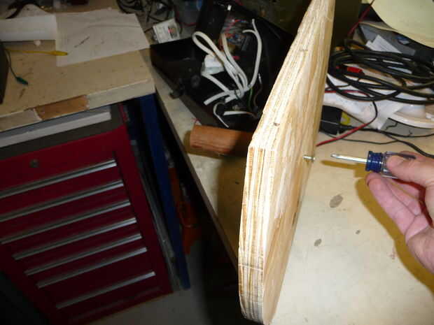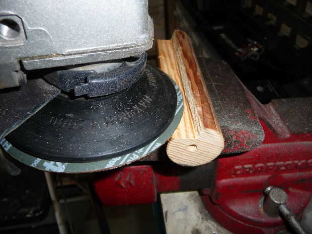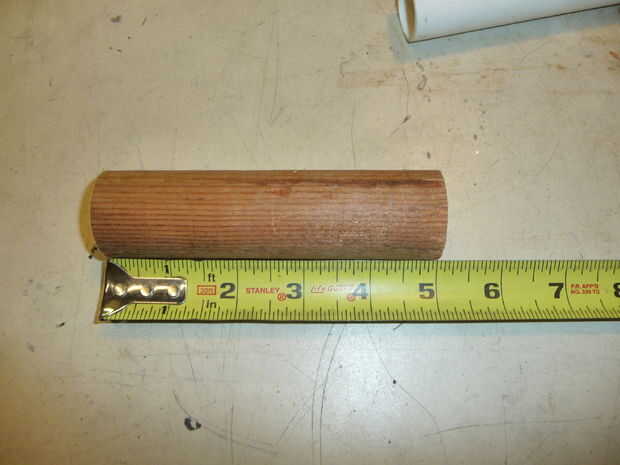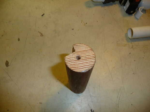 Cortar un trozo de 1, 1/4" de diámetro de madera espiga una longitud de 5". Tallar una V en forma de ranura a lo largo de su longitud. Profundidad no es crítica, pero sobre 1/4" es buena. Esto se utilizará para ayudar a sostener y centrar el tubo de PVC de 1/2" contra la espiga. Que también pre-perforar el pasador en el centro para el cuerpo del 2" tornillo de madera para mantener el pasador para partir. Ahora fije el pasador a su base con el tornillo de madera de 2".